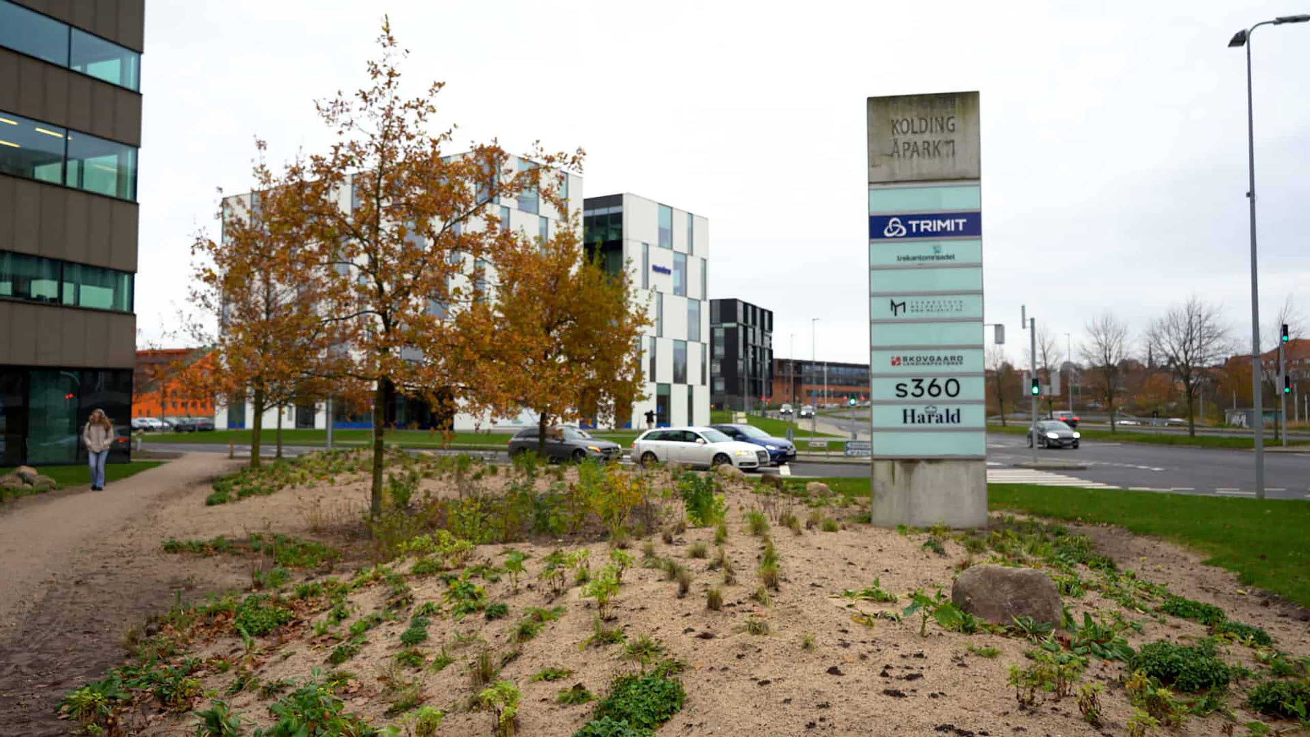 I sommeren 2023 fik anlægsgartner Lorenz Galsgaard til opgave at re-designe forarealet til Danica Pensions ejendom ved Kolding Åpark 1. Kravet var, at der skulle laves et mere varieret landskab.